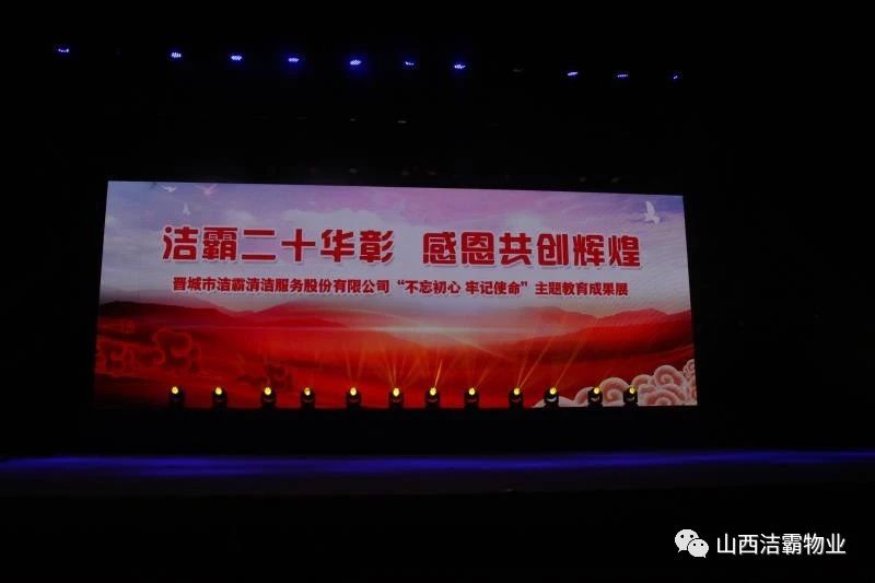 本次晚會(huì)以“潔霸二十華彰,感恩共創(chuàng)輝煌”為主題,此次慶典的核心思想是“感恩”,主要角色是潔霸的創(chuàng)業(yè)者。為此,公司對(duì)入職潔霸的創(chuàng)業(yè)功勛和一線員工進(jìn)行了表彰獎(jiǎng)勵(lì)。本次晚會(huì)共設(shè)8個(gè)獎(jiǎng)項(xiàng),包括“潔霸先鋒”“奉獻(xiàn)之星”“管理之星”“潔霸管家”“潔霸工匠”“清潔之星”“潔霸衛(wèi)士”“園藝之星”等。他們是:李山虎、張永智、史志霞、陳福林、王紅軍、余艷青、劉二丑、成艷粉、楊改梅、王書(shū)玲、張國(guó)榮、耿竹青、張粉霞、宋秋苗、陳先梅、張晉平、張偉山、趙瑞軍、王廣平、郭志云。晉城市原副市長(zhǎng)成育廷、晉城市商務(wù)局原局長(zhǎng)王新善、晉城市非公和社會(huì)組織工委書(shū)記郎軍芳、晉城市婦聯(lián)三級(jí)調(diào)研員李蓮菊、晉城市總工會(huì)商貿(mào)輕紡煙草服務(wù)業(yè)工會(huì)主席張玉濤、晉城市城區(qū)財(cái)政局局長(zhǎng)翟明太等領(lǐng)導(dǎo)為他們頒獎(jiǎng)。